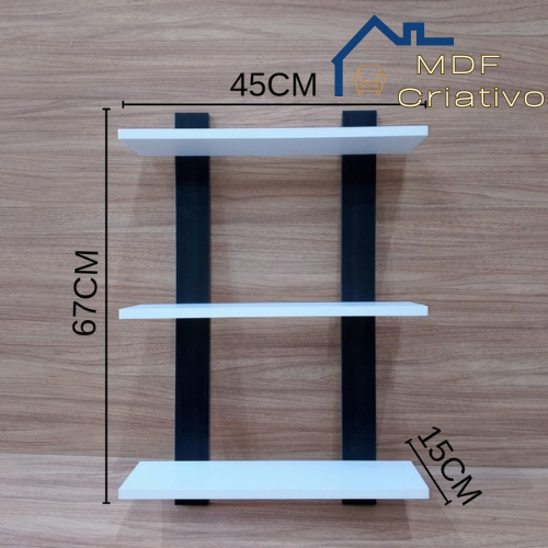 A Prateleira 3 Andares Modelo Menor MDFCriativo é feita em MDF de alta qualidade, oferecendo resistência, funcionalidade e um design moderno para qualquer ambiente.